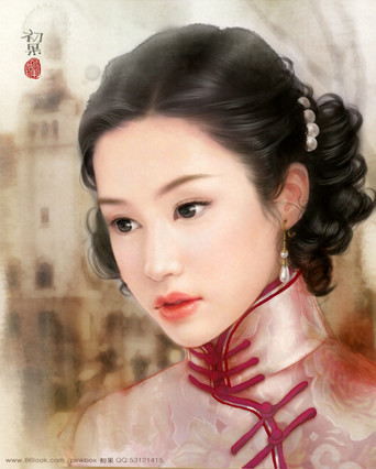 That's a really pretty Chinese dress its very elaborate. The girl looks very realistic.