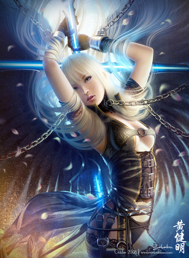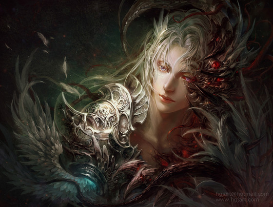SO MUCH MOTION! This is just breathtakingly incredible! I love his wings, the sword, his expression! AND HIS EYES. DEAR LORD.