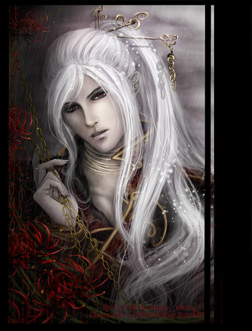 OMG I swear, I've never seen this picture before now, yet it reminds me EXACTLY of one of the character's I've had for about a year! My character, in his middle years, has silver hair, gleaming red eyes, and a snake named Scha, and I often refer to him as a king!