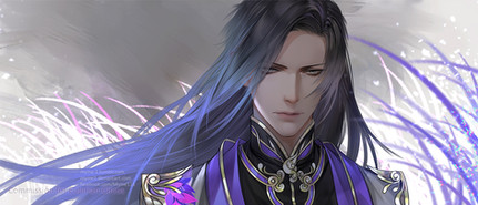 This is gorgeous. The purple goes so well with his dark outfit and calm expression.