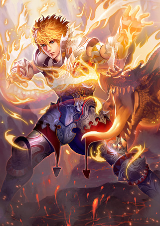 Very dynamic! This looks like it could be the cover of an RPG game, or even a fighting game The background is also very well done