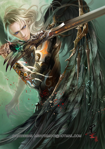 Just wow. It looks so real, the wings are amazing and so is the weapon thing he's holding. I especially love the way the hand is reaching out from the water. It's like the guy is reaching into the darkness for someone (?) he loves and lost. Or maybe he's embracing his "inner demon"