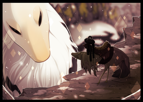 I was just going through your gallery yesterday for inspiration~ So happy to see you submit more~ ;3; Every single detail in this is absolutely gorgeous! Wraps on feet, Sapphire's expression, everything on the hat, eyes, beard, just so point out a few <3 And of course the wings are stunning in my eyes so it's funny you say you're slowly getting better at them when I can't find anything to improve xD