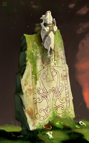 Illustration for a game called "Fallen Gods" by Wormwood studiosThe stone depicts the creation of the world in the mythology of this world.