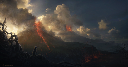 Zbieram się i zbieram oglądając twoją grafikę raz po raz, by w końcu skomentować. Kiedy myśle, że nie wyskoczysz już z niczym co by mnie zadziwiło nagle. PACH! Oczy mi na wierzch wychodzą. Nie wiem skąd bierzesz natchnienie, ale...po prostu brak słów. Może mój nieco mroczny nastrój napędzany pogodą skłania mnie do tego, ale mniejsza o większość. Obraz jest po prostu wspaniały. To w jaki sposób to wszystko pokazujesz jest cudne. Od tego złowieszczego wulkanu, że tak powiem. Po spokojne miasto które wydaje mi się, że niemal ożyje za moment i stanie w płomieniach. Grafika wzbudza też we mnie ciekawość elementem kamiennej bramy? Wrót kopalni? Nie wiem co to, ale samo nasuwa mi się pytanie. A co tam jest? Przewaga kolorystyki jest dość mroczna, ale zieleń trawy jak i to miasto przyjemnie ją łamią. Piękny kawał dobrej roboty. Podziwiam jak zawsze. Brawo.
