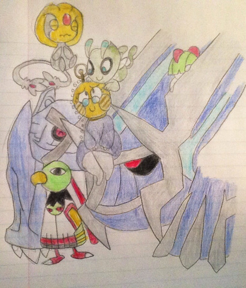 This species name is Duroko. In *Paranodic 's and my fanfic rp story,I(i had this world way before we started rping) have a mother whom is Arceus the Queen or heaven and my father Sakurai(black and blue arceus) the King Of Hell. Making me the Godling and the most powerful thing in the entire universe(STFU OK?!). In my home i am the leader of this place known as the Legendary Lineup where you can fine almost ANY type of creature. Whether is mythical creatures,anthros,pokemon,fakemon,soul reapers,sonic characters,etc. ANYTHING!! And *Paranodic 's lineup is next to mine,her's is more peaceful. U can ask whats there. Anyways,in the Legendary Lineup there are these 11 protectors of earth and the lineup known as the Warriors. They are ranked 1-11 in order: Chris,a badass charizard that has a black hat that never shows his eyes. Mewtwo,well you know mewtwo,he's loyal to me and protects me <3. Rayquaza,a rough and tough gangsta but soft and sweet to his family. Shady,basically THE shadow lugia,he is soft and sweet loving and strong. Giratina,the ultimate master of the Soulsinger(info here [link] ) he's also sweet but not too sweethe can be mean when he wants to and he loves to sing,everyone in the lineup admire him for his beautiful voice;He is the oldest brother of palkia and dialga. Palkia,very calm;loves water but gets in flight with brothers. Dialga,the youngest brother of Giratina and Palkia;can be very immature a times;all 3 brothers are mexican like me