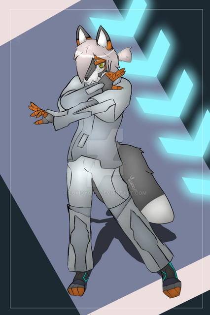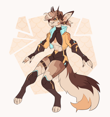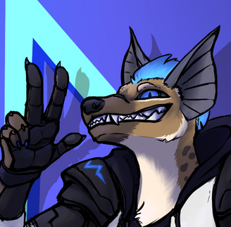 Fel is a She/They enby Android-Gnoll (or as i call her a yeendroid) with a hologram/hard light mane, Led eyes, and ears made of rotating little plates so they can either act line sonar dishes and look like spotted hyena ears, or flatten into a more pointed shape like striped hyena ears