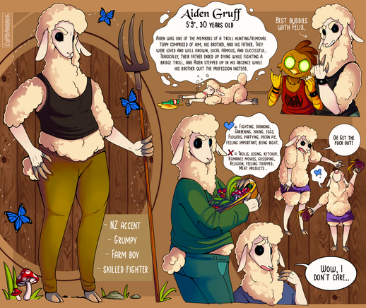 Mellow gets uncomfortable easily if certain topics are hit, mainly his sexuality and/or appearance. He acts non-confrontational in those situations, internally panicking in hopes of changing the subject without showing how nervous he truly is. The thought of being judged without being able to defend himself makes him anxious and to wish he stayed home with his pet instead of coming to this party. He shares very little about his personal life and prefers to talk about random topics like plants or the weather, small talk stuff.