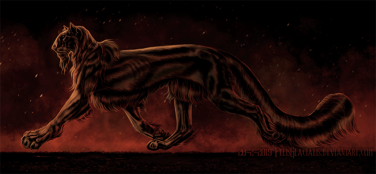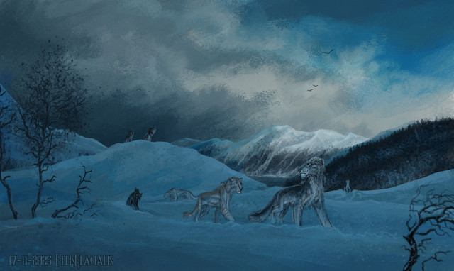 The big Siderian (northern horse-sized big cats) Torstein on the prowl. I may draw more siderian hunting scenes to show this important part of siderian life.