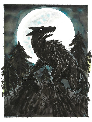 This was just an inktober sketch that I did rather quickly on A5 water colour paper, with only black water colours, black fineliners and white gel pen for the eyes. I added this simple colour gradient in photoshop and I like how such a simple not-so-detailed drawing can still create such an ominous atmosphere that fits well with Halloween. I may make more like these.