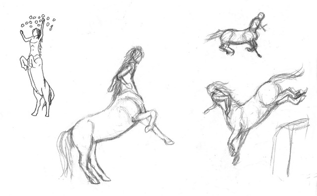 But I'm not crazy about horse centaurs ("classic" ones). I've got nothing against them, but I guess I like just like those modeled off of different animals. I saw a weasel centaur once. That was awesome. Gregor, one of my characters, started out as a squirrel centaur.