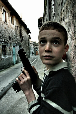 great shot. strong and tender in the posture of the boy, terrible in the weapons pending on their shoulders. I am interested too on the location....