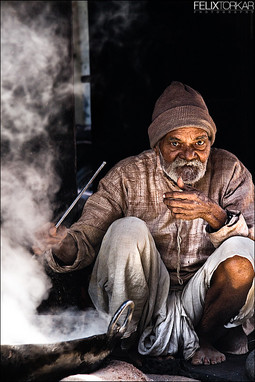 Instant fav - what amazing textures!! Great lighting on the man's arm and shoulder - contrast with the rough textured skin of the elephant.