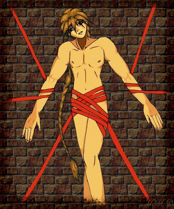 Mwahahah, Luke Valentine bondage! Uncensored version is over at my y!Gallery page - decided to just leave this one as flat-color and give it a little border.Related content