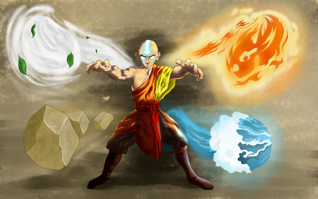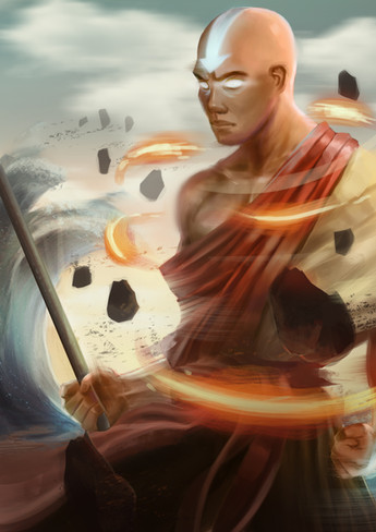 AMAZING JOB! I love everything, about this picture! The colours, the style, the lighting, the details both on the elements and Aang. Everything!