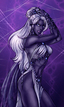 This is, like previous comments said, really awesome. I love how you managed to make such a "light" and dymanic image, with such dark and heavy colours. Also, the flowy texile folds are tooo diiie for.