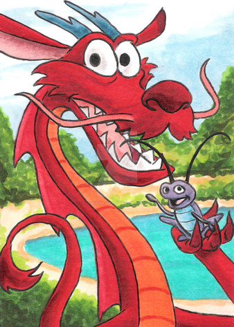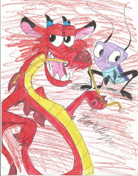 Now that is SOO COOL! It's the coolest drawing of Mushu I've ever Seen! But... uh... Cricky needs to be cuter.