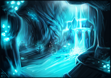 & that's so cool, about the Snowdin combined with Waterfall idea... because, I already have some kind of unique feeling whenever I walk my human character from Snowdin into Waterfall; but, I never thought about drawing that transition space~ Maybe you had more in mind an actual crossover of the two levels' aesthetics. Either way, this piece captures it beautifully.