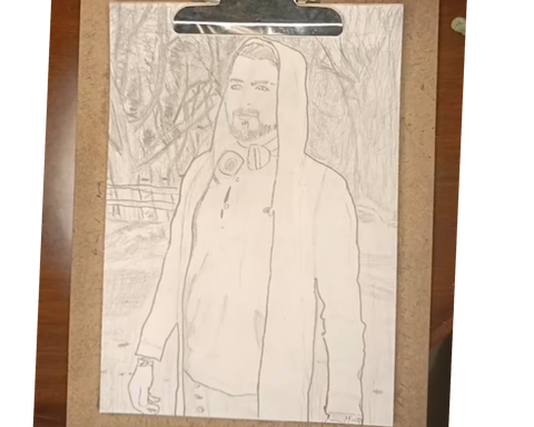 Setup for a painting. Working title "Red Riding".This sketch actually made me realise that my character, though impervious to the cold, should probably wear a jacket to blend in...