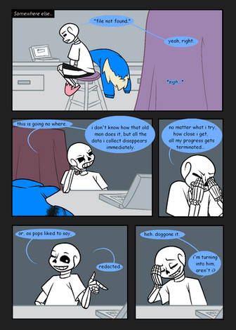 Oh, by the way, Sans drops the ever-smiling facade under high-stress/when no one’s looking in this comic. I don't think I mentioned that previously.