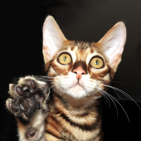 Nope, that serval has been declawed. Cruel and inhumane process. As is keeping servals as pets...they're wild animals, people.