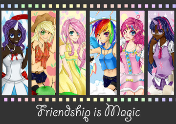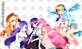 WOW!! NICELY DONE!!! First thing I have to say is very, VERY detailed!!! I love the way you made it look!! It has a very girly tone to it like MLP should and the outfits are very suitable for their personalities and for an anime character!!! The eyes are amazing on all the characters included in the pic!!! Their hair is also great and mainly is how you redesigned the MLP characters in an anime form is just phenomenal As far as the background goes, very nice and simple background which is good since you don't want to draw the attention away from the MLP characters which is very nice! Great Job, keep going on your anime and you'll get far!!