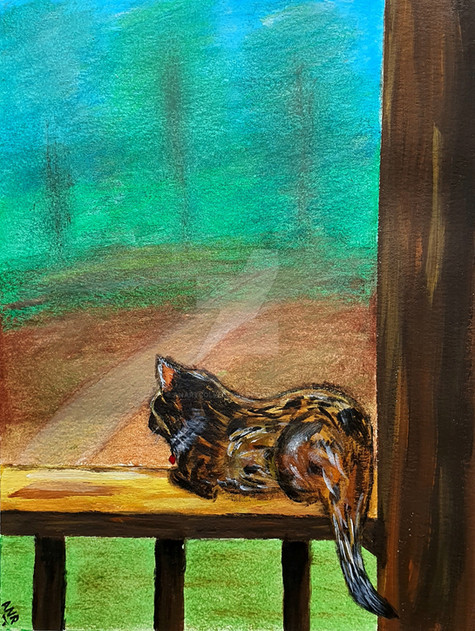 This one was hard because the original photo is very dim and the cat is facing out the window, so I had a lot of editing, improv, and photobashing (with paint) to make it look fairly believable with the lighting and all. But I think it came out alright!