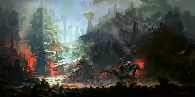 The smoke effect is very nice, I like how the bright reds almost jump out of the otherwise dusty-colored picture. Is this part of a bigger story or just a quick flash of action?