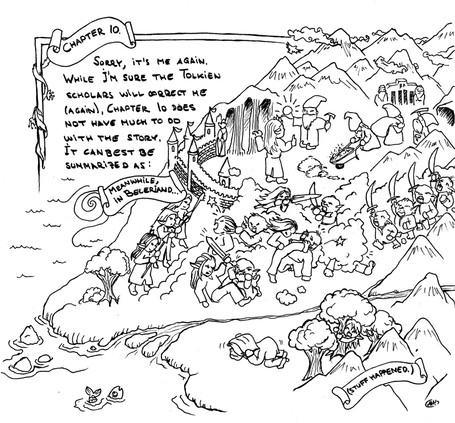 I love how your art style captures this scene. I loved that scene with The Killer Rabbit, and you drew the rabbit in an oddly cute way.
