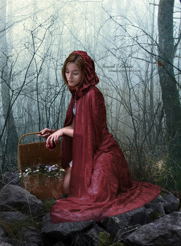 I hope the wolf won't eat her...This piece was actually created for the artjam organized by It was still to be decided what the subject would be, but Little Red Riding Hood was in the lead in the poll, so I started with her. However, Rapunzel caught up with her in the end and so I'm going to make a photomanipulation with her, too.