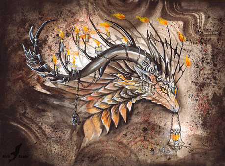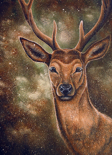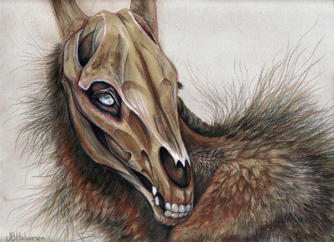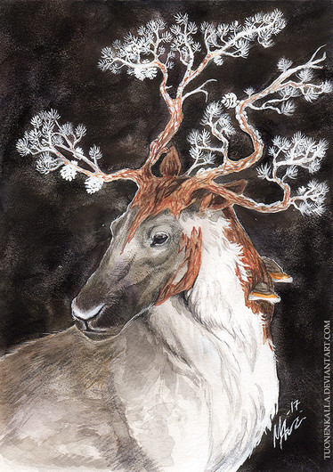 Here's the other painting that I managed to finish in my winter break. This one was based on a concept that've been lying around for such a long time now. Originally it was supposed to be a reindeer with candles in its antlers (inspired by a candelebra I saw once made out of various antlers). Eventually this concept sort of merged together with the zombie-reindeer-horse-dogs that I have a habit of drawing.It sort of ended up as a character, a kind spirit that would appear when nights turn longer to offer some light in the dreaded darkness.