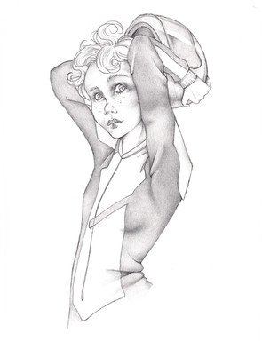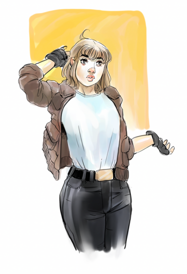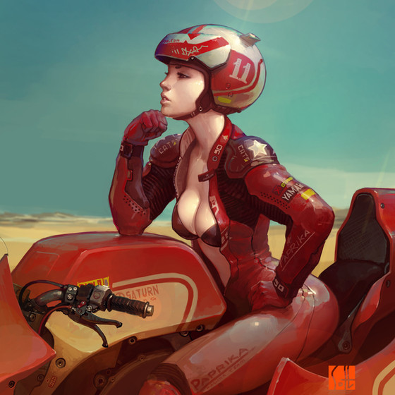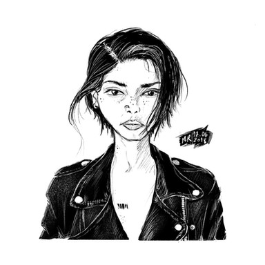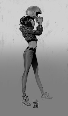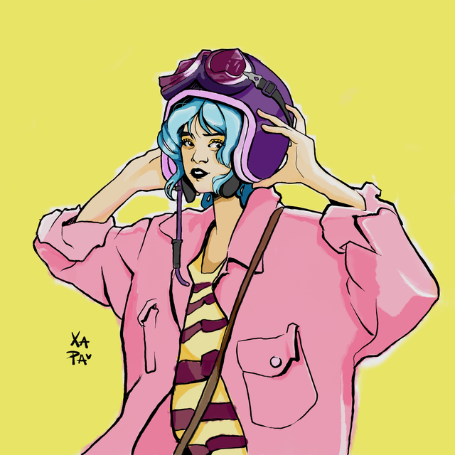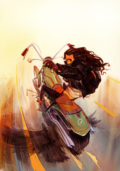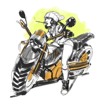 If this is what I think it means. I was this person. Had a cafe racer and had very similar clothes (except I wore a Confederate bandana and forage cap instead of a helmet). Fun days. Nice drawing!