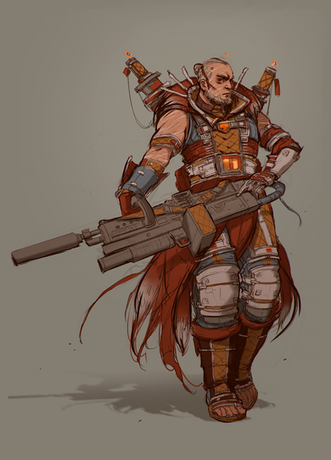i like the post apocalyptic gear and the grit works perfectly with your lineart