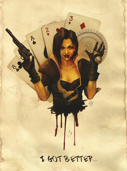 You should have wrote: "For The Brotherhood!" That's what she yells when she punches someone. So, more fitting.