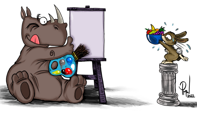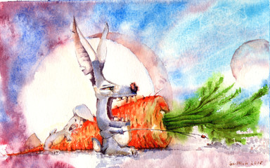 "One day, there was a rabbit eating carrots in a vegetable garden, until one carrot escaped."Made in watercolor and ink and based in that animation I submited some time ago xD.