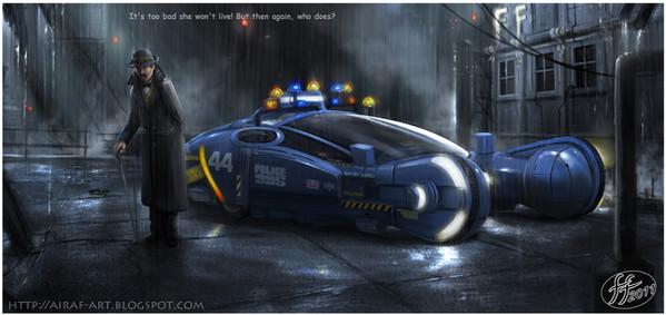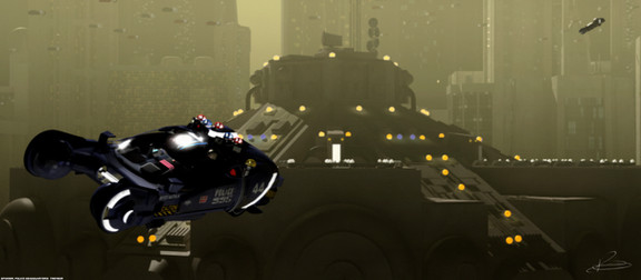 My Homage to the movie Blade runner .I choose a scene of the end of the movie , because I wanted to have the spinner landed , and show the details on the rooftops ,and the rain.