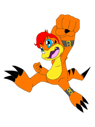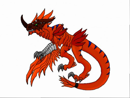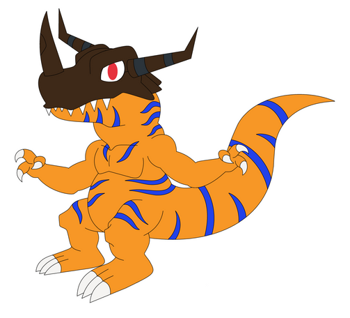 versão dois do agumon do digitrix, em sua forma tem a combinação de greymon, Tuskmon e Tyrannomon no corpo de agumon. baseado na linha evolutiva do jogo digimon suviver.version two of digitrix agumon, in its form it has the combination of greymon, tuskmon and tyrannomon in the agumon body. Based on the evolutionary line of the game Digimon Surviver.