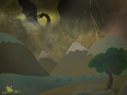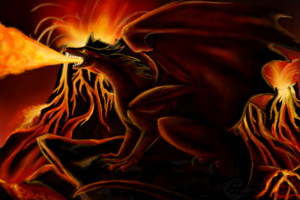 Day 9 of Smaugust."Fanning his wings, the living flame drowns the forest in a scorching blue sea."