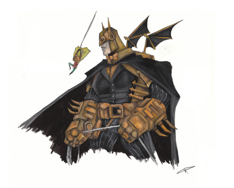Reminds me a bit of Rocketter. The image is great, I just have a problem with one thing... nothing on it reminds me of a bat! No wings or ears silhouette. Was that intentional? :S