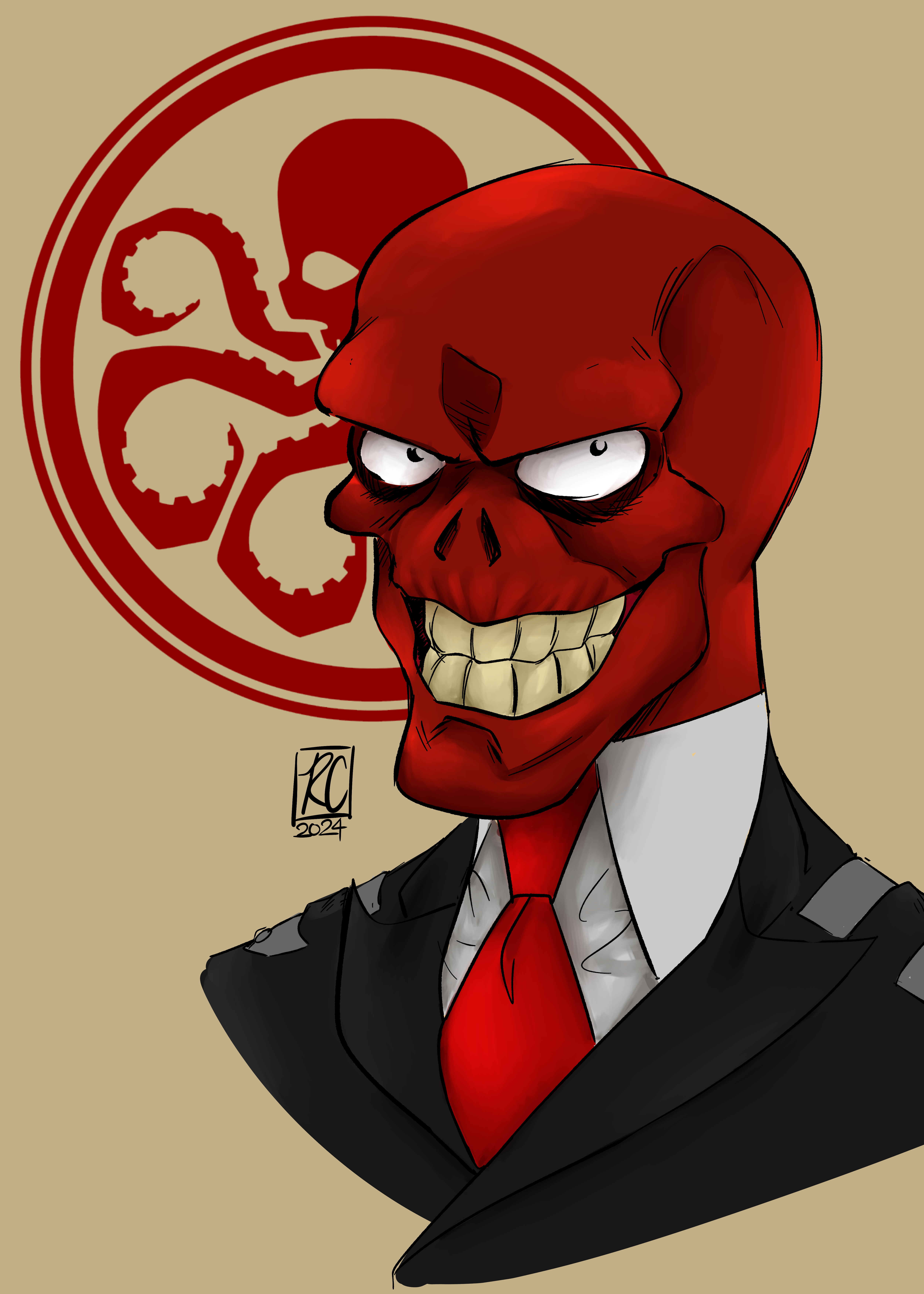 Ahh... The Red Skull... the only comic book villain I know without even a hint of a single redeeming characteristic ha ha... You captured his character perfectly, and your technique is cool and the gang!