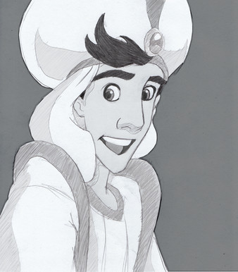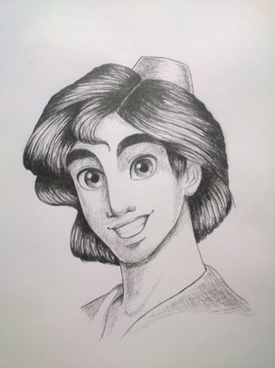 This drawing is a sketch which decided to shade, but paper is not of good quality and my scanner that doesn't work well, the result isn't what I expectedAladdin Β© Disney