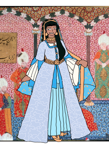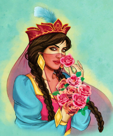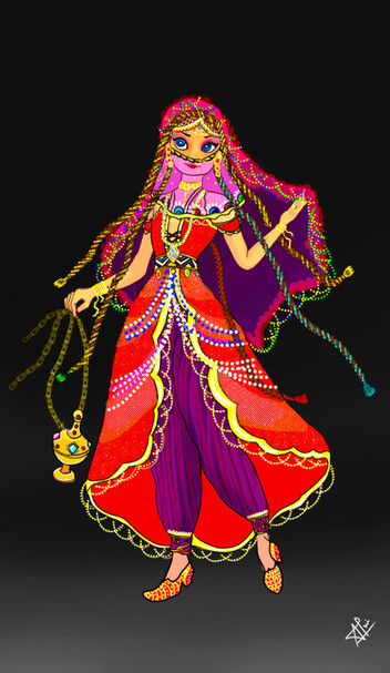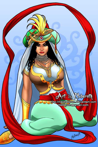 Meanwhile, there was an evil jinn named Zara who appeared in human form. She was gorgeous. She was desired by all men because she was attractive. She was fair skinned as light as snow and her eyes were glistening but were unusual as they were the colour of fire, yellow and orange. Her hair was golden brown, long and luscious. People could not but stop and stare. Her feet, belly and arms were covered in henna. She wore jewels from head to toe. In the sun her jewels would shine so bright. She seemed so innocent and looked angelic but she was wicked. She was spiteful, devious and was only interested in herself. The reason Zara was so beautiful was because she had killed previous Queens and Princess' and stole their beauty using her dark powers. Zara could only kill the Princess' and Queens when they had turned 16 years old or older because that is when they show their true beauty and become women. But Zara really hated Queen Sadia as she was meant to marry King Mobeen but he was not interested because he could see past her beauty and saw her wicked heart. However Zara could not harm Queen Sadia because her special necklace that she wore. It was made to prevent evil spirits harming her. The necklace was made of wool so that it would not stand out.