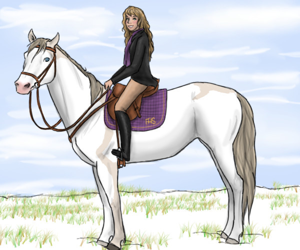 Hmmm, definantly a very lovely picture, I really do love this mare, she's so pretty but I think the grass is a little bit to white and blends in with the horse just a tad to much, I like that it looks like dead grass but it doesn't really blend well. Also, the clouds are a little to sparce and broken up, it takes up way to much space where as Clouds are suppose to be big, thick and either a few large masses or a couple smaller masses at the top of the sky. Also, sky goes from light to dark not dark to light though now that I look at it, it could be mountains o.o. I really love your antonamy, it's gorgeous and very accurate. Your legs are just perfect and I love how your shading defines the body so well. That muzzle is just amazing and so realistic as are your ears! I love this new style for mane and tails but may I make a suggestion? When doing the manes, start with a little bit thicker lines to add stray hairs and then slowly go smaller and smaller. It gives the hair more of a natural look. Very gorgeous work hun, she definanty does look very bouncy and excited ^^