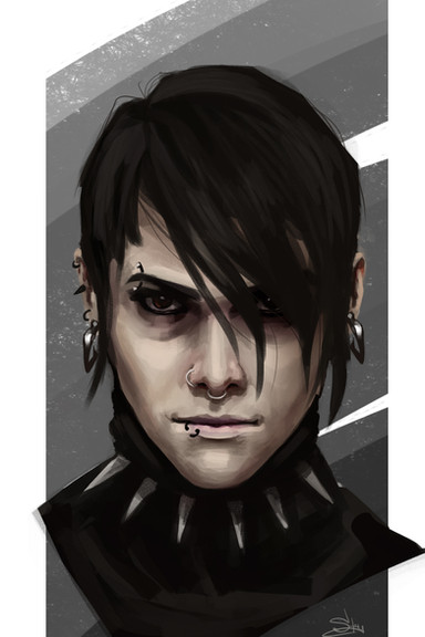 Random goth girl I decided to paint from imagination while waiting to get my hair cut at the barbershop.As of now one friend and one family member thinksβeach on their ownβthat the name Vanessa suits her ^^ So thats her name.