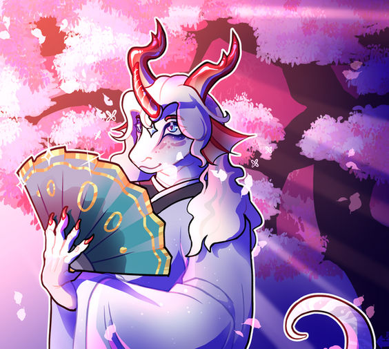 #blossom #cherry #commission #commissions #cute #dragon #kawaii #kimono #pink #red #spring #ferwanwan