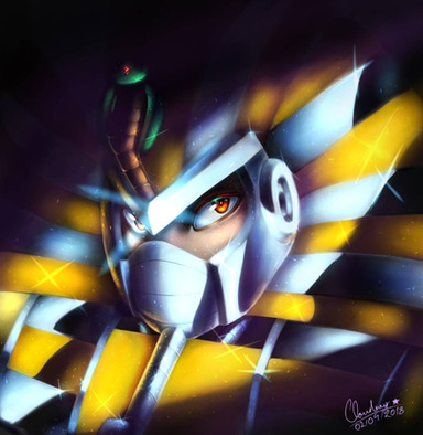 For ! I tried doin somethin new for the lines, I think it came out really good!I used Rock Man Online's Pharaoh design, as I'm very fond of it, I hope that's alright!