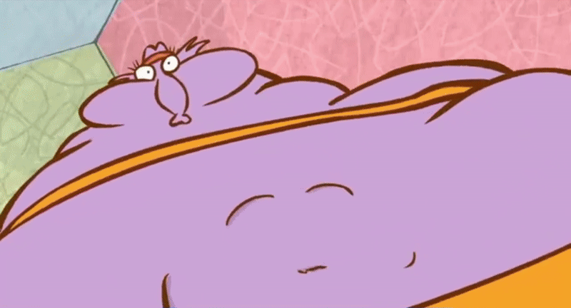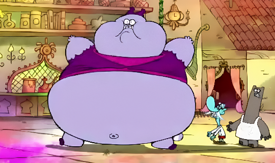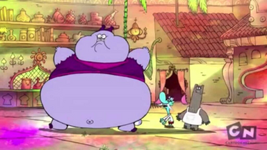 Chowder tries to urinate, but fails and grows back, covering the entire screen with his soft, plump body, now looking fatter and tallerThe sequence of Chowder growing up was without a doubt the best part of the episode