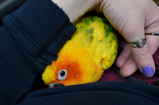Just a random picture ofΒ Pippin in his favorite spot.^^ He sure does love to hang out in my shirt.Related content