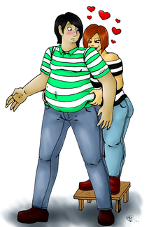 Awww that is so cute! the guy is so chubby and sweet ! the girl looks kinda stuck up but it kinda adds to the cuteness on the guy's part .