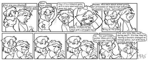Ok, I know there are problems with it... this is the first time I've tried to do a comic sort of thing like this. Any comments would sure be welcome. It was fun to draw and put together.Sid and Danny are so much fun! *Add in random pub harlet.*